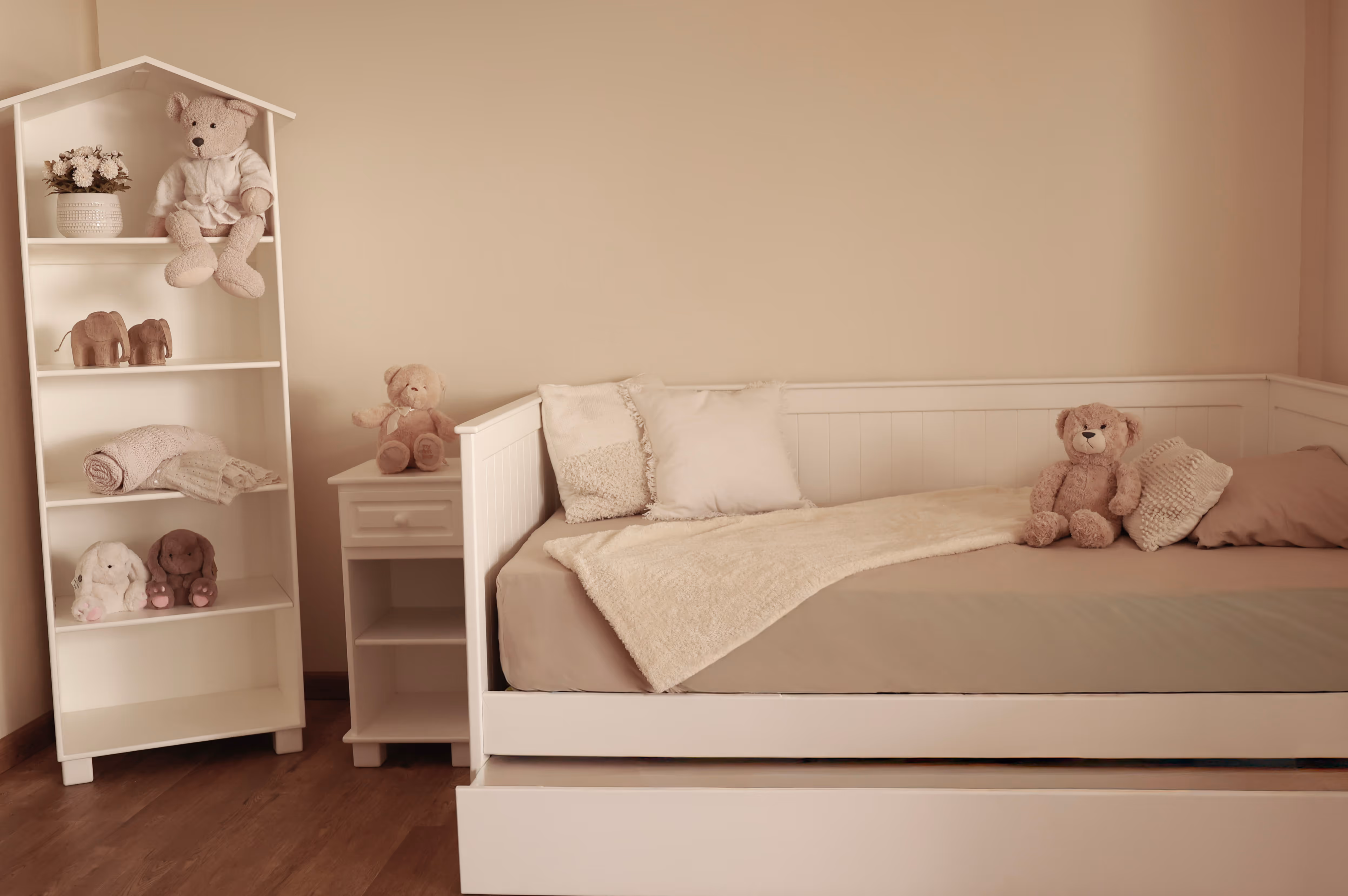 Práctica versátil, se adapta a la pared simulando un sofá. Ideal para aprovechar el espacio y crear un rincón acogedor para descansar, leer o jugar.